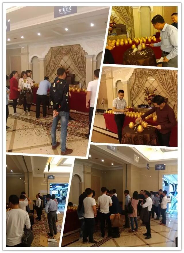待业主们下完订金后,接下来,就是本次活动的重头戏了,没错,就是砸金蛋了!当然也是现场业主陶瓷装修设计为中意的活动了,拼手气、砸大奖,新南悦就是这么大手笔!