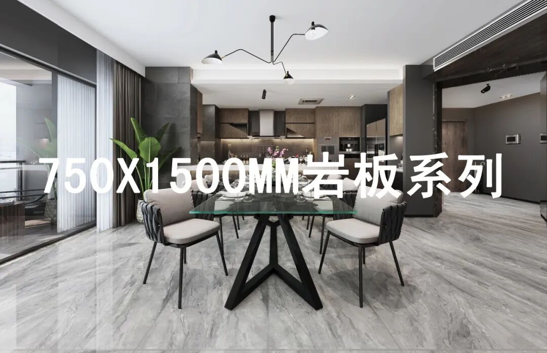750*1500岩板系列,既传承超大规格,又能呈现流畅纹理的优势,又比常规尺寸瓷砖可承载更多纹理元素,让有限空间在视觉上得到最大延伸气场更强大。