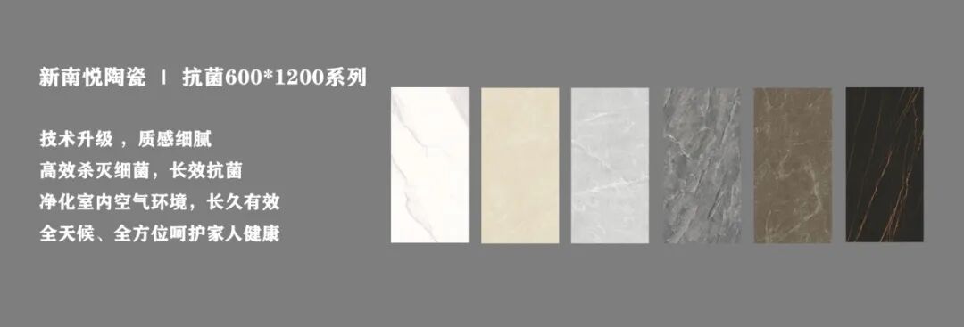 社会健康问题使得具有抗菌功能的瓷砖成为陶企突围的一条创新之路,功能瓷砖顺应了国家供给侧改革提倡绿色建材的趋势。新南悦陶瓷600*1200抗菌新品系列,以健康为大旗,以功能为支撑,带来美好生活体验。